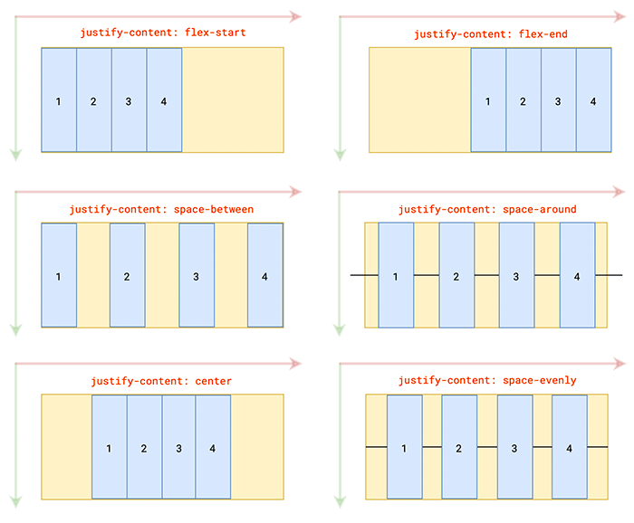 | space-evenly | 项目之间的间隔与容器与项目之间的空隙是一样的 |
