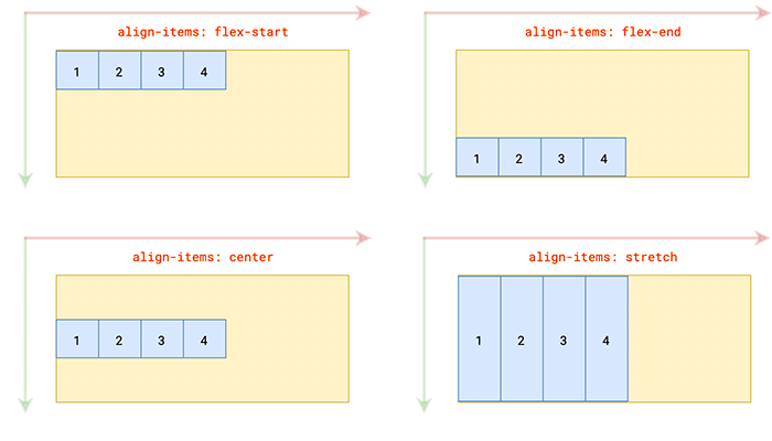 align-items 属性设置沿测轴方向上的对齐方式,该属性也设置在容器上(单行对齐方式)